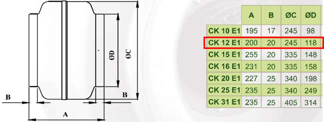 DÜNDAR CK 12 E1 3000 D/D Monofaze Yuvarlak Kanal Fanı Teknik Çizim ve Ölçüler Tablosu