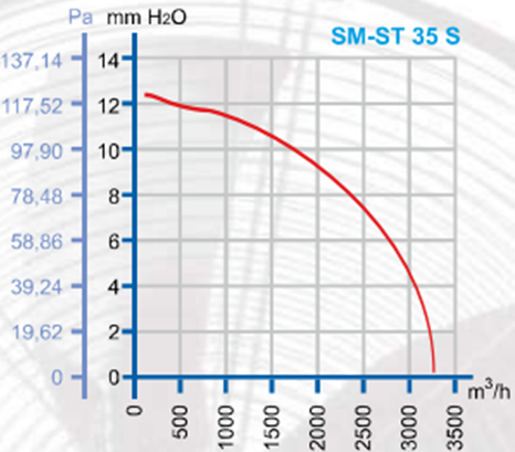 DÜNDAR SM 35 S 1500 D/D Monofaze Aksiyal Tip Soğutmalı Sanayi Fanı Performans Eğrisi