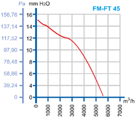 DÜNDAR FT 45 1500 D/D Trifaze Aksiyal Tip Soğutma Fanı Performans Eğrisi
