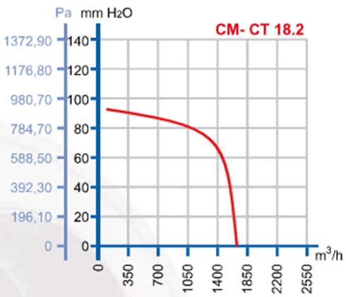 DÜNDAR CM 18.2 3000 D/D Monofaze Salyangoz Aspiratör Radyal Fan Performans Eğrisi
