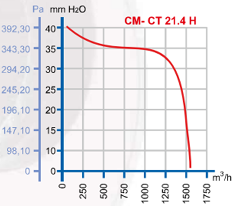 DÜNDAR CT 21.4H 1500 D/D Trifaze Radyal Sıcak Ortam Fanı Performans Eğrisi