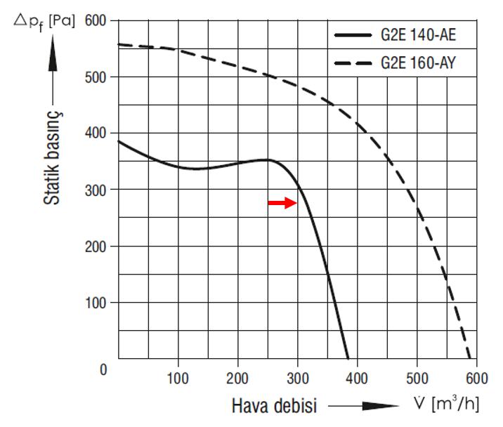 EBMPAPST G2E140-AE77-01 Monofaze Tek Emişli Radyal Fan Performans Eğrisi